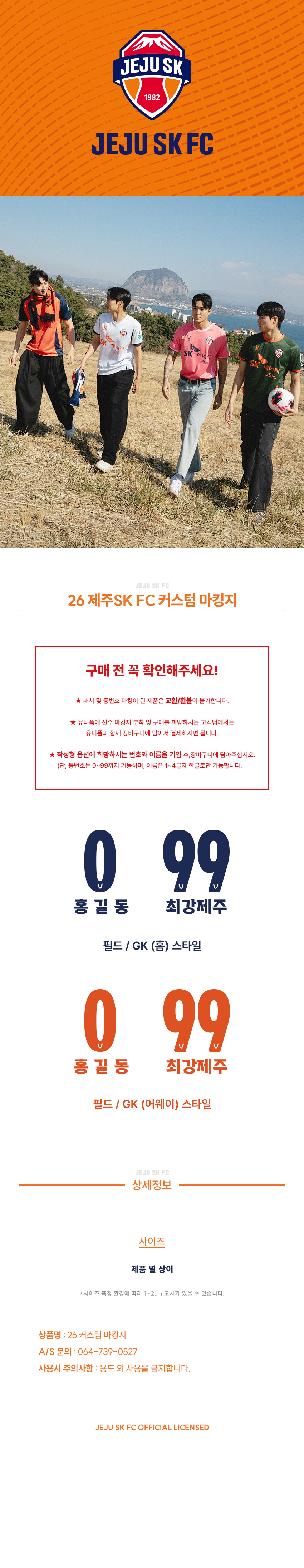 - 마킹 유니폼(K리그 패치 및 이름&번호, 기타 마킹 작업이 된 유니폼)의 경우 교환 및 환불이 불가합니다.