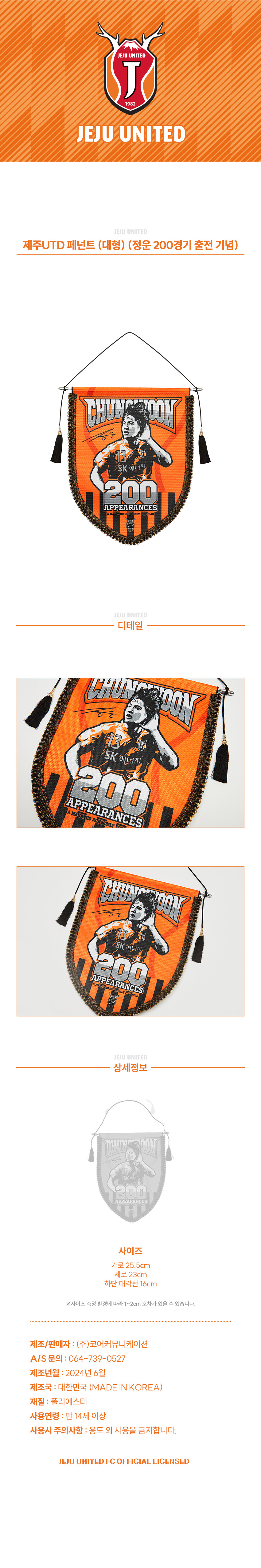 제주유나이티드 페넌트 (대형) (정운 200경기 출전 기념)