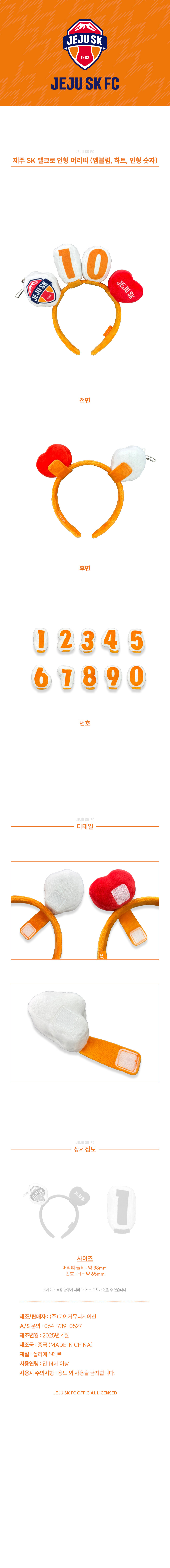 제주SK FC 벨크로 인형 머리띠 (엠블럼, 하트, 인형 숫자)